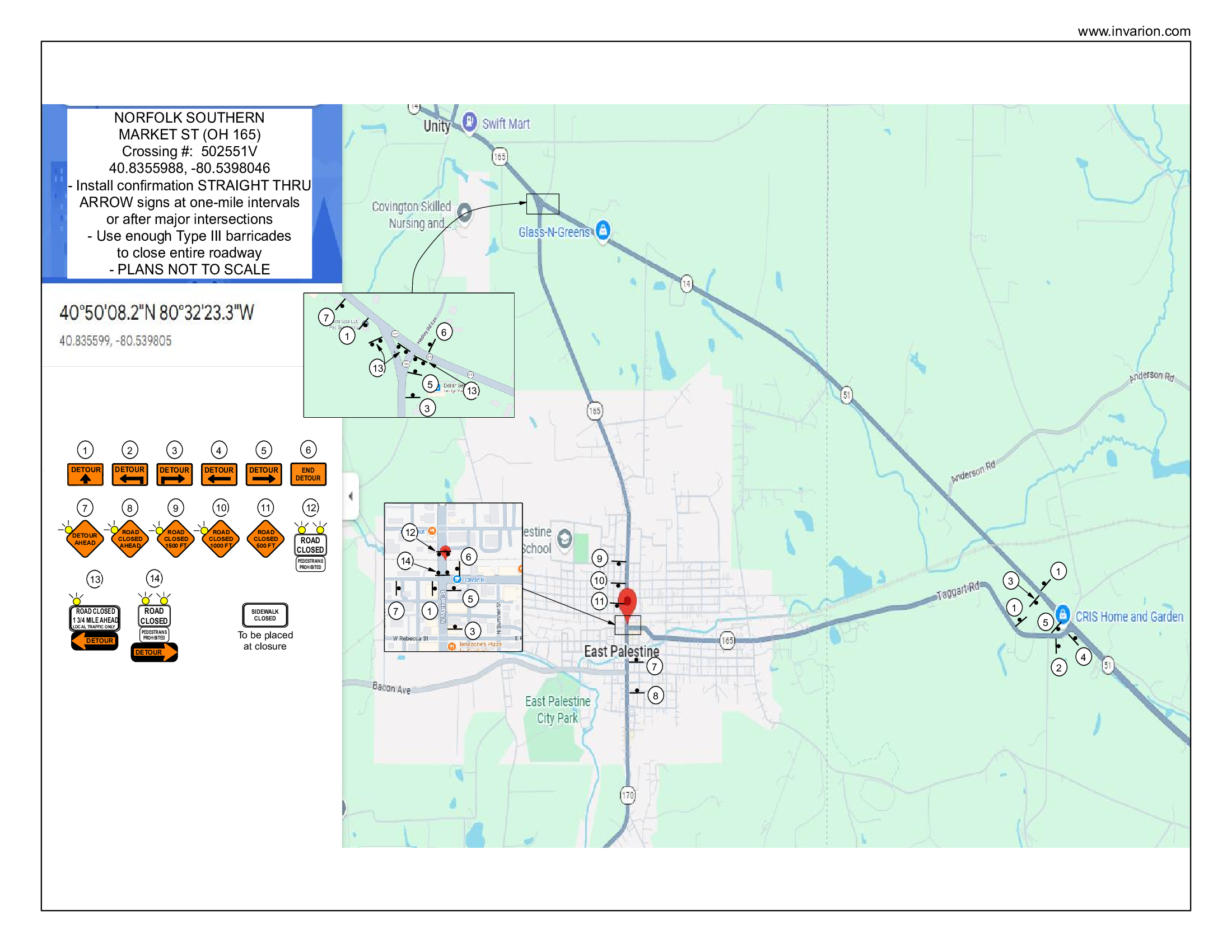 The railroad crossing on Market Street will be closed for repair and maintenance starting on Monday, April 13th, and be closed until Friday, April 17th until end of day. During this time of closure, NO traffic shall be permitted to cross the tracks. Attached below are the detour plans that are intended to be implemented.
